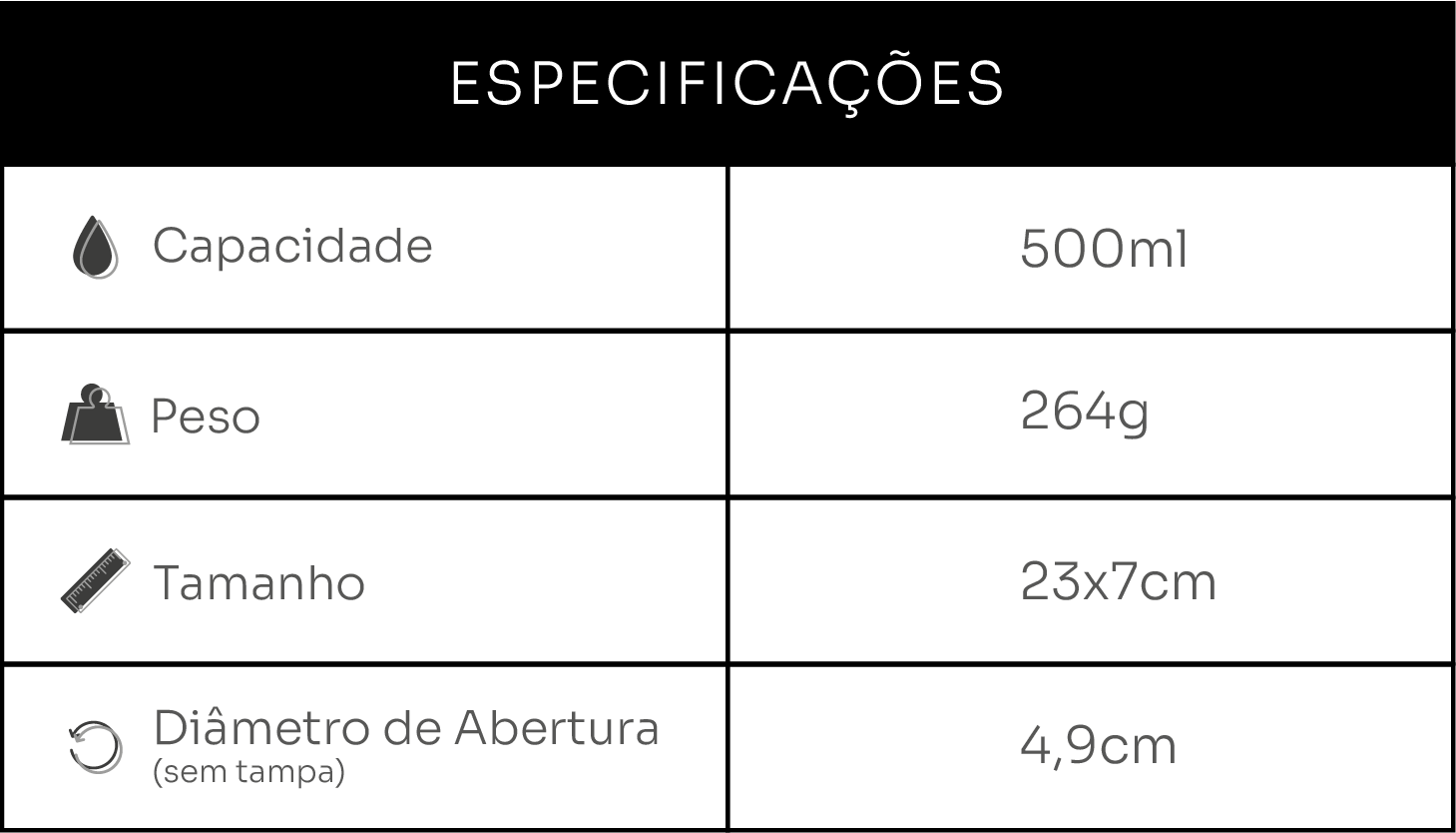 • Livre de condensação: A temperatura interior não impactará na superfície externa da garrafa;